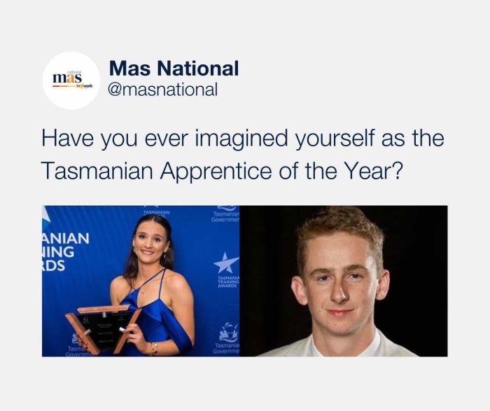 Dreaming of becoming the Tasmanian Apprentice of the Year? Well, now is your chance to make it happen! Nominations for the highly prestigious 2024 Tasmanian Training Awards are officially open! Whether you’re an Apprentice, Trainee, VET student, teacher, or trainer, this is your golden opportunity to be recognised for your hard work and dedication. Not… Continue reading Nominations open for the 2024 Tasmanian Training Awards!